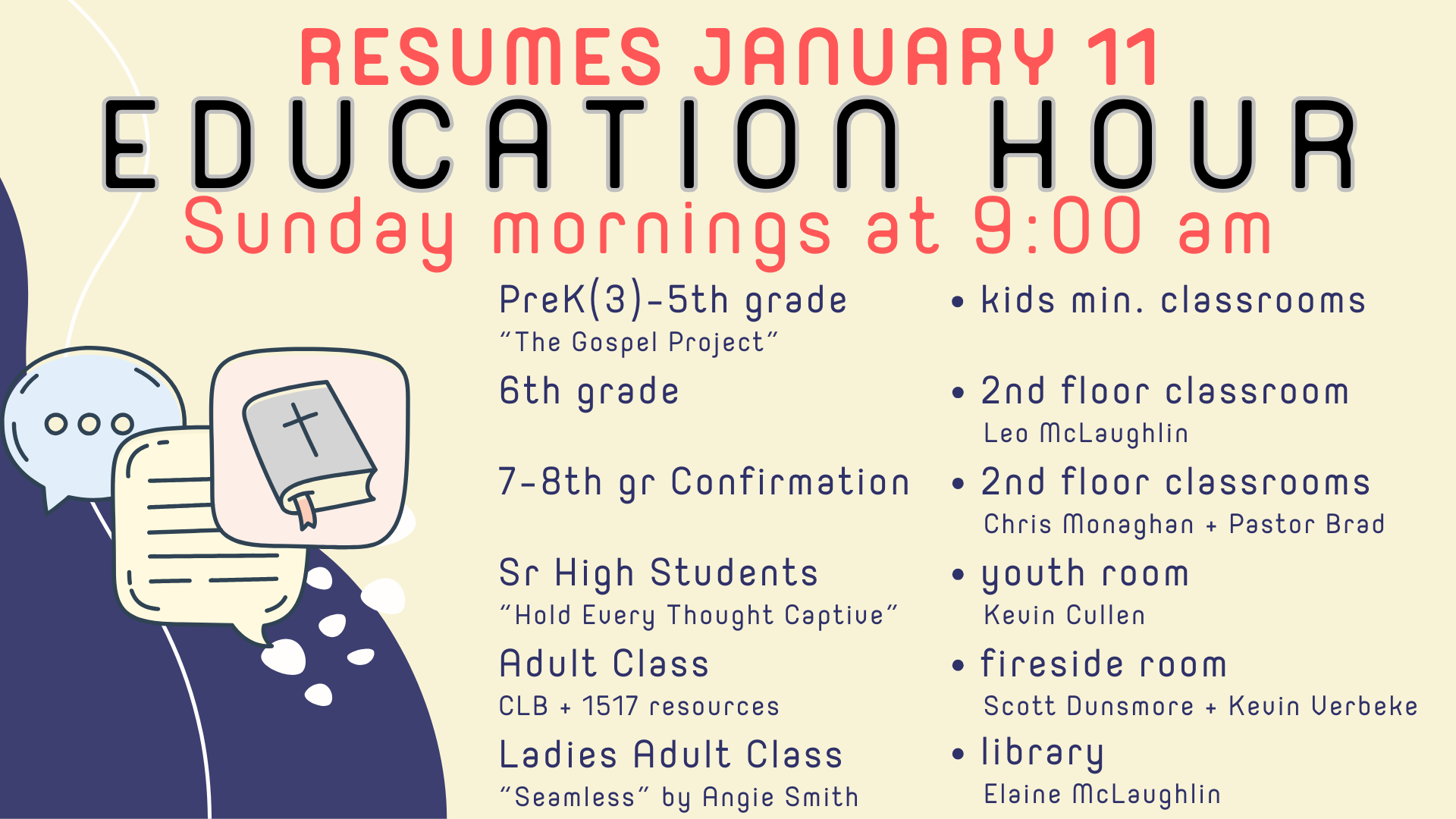 Education Hour at 9:00am